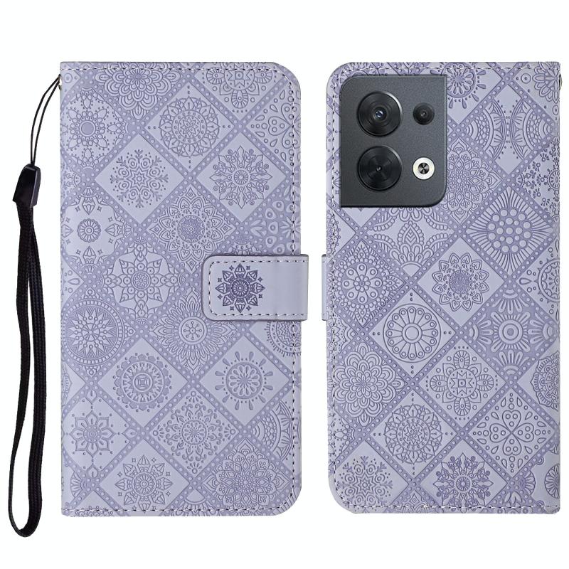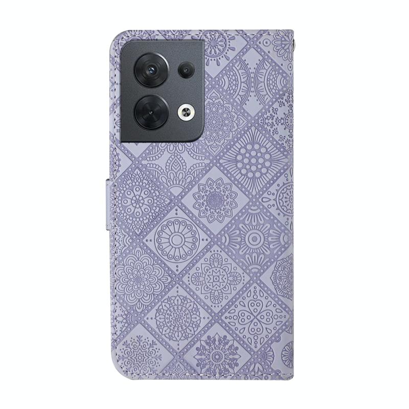 Θήκη τηλεφώνου δερμάτινη με ανάγλυφο σχέδιο εθνοτικού στυλ για OPPO Reno8 (Μωβ)