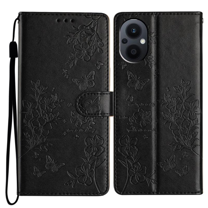 For OPPO Reno8 Lite 5G Butterflies and Flowers Leather Phone Case(Black)