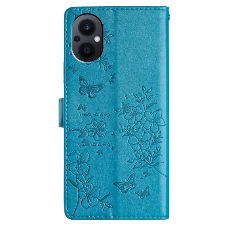 For OPPO Reno8 Lite 5G Butterflies and Flowers Leather Phone Case(Blue)