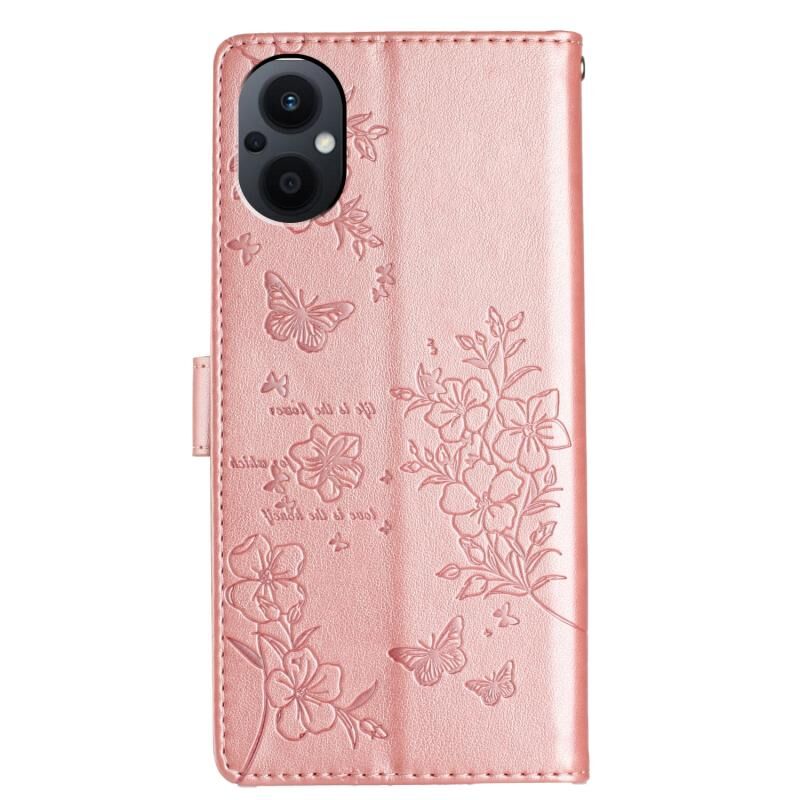 Θήκη τηλεφώνου από δέρμα για OPPO Reno8 Lite 5G, με σχέδια πεταλούδες και λουλούδια (Χρυσό)