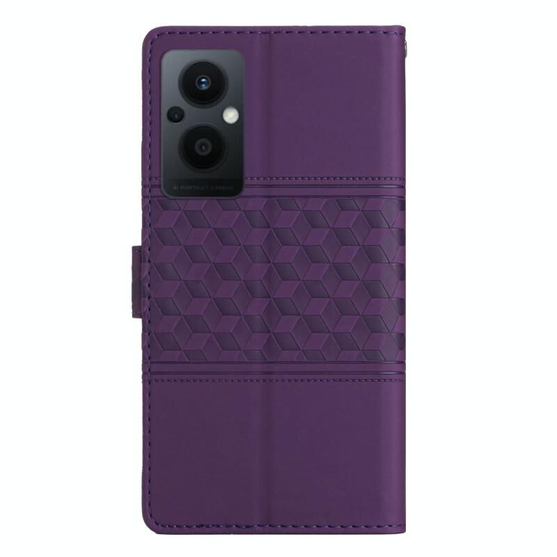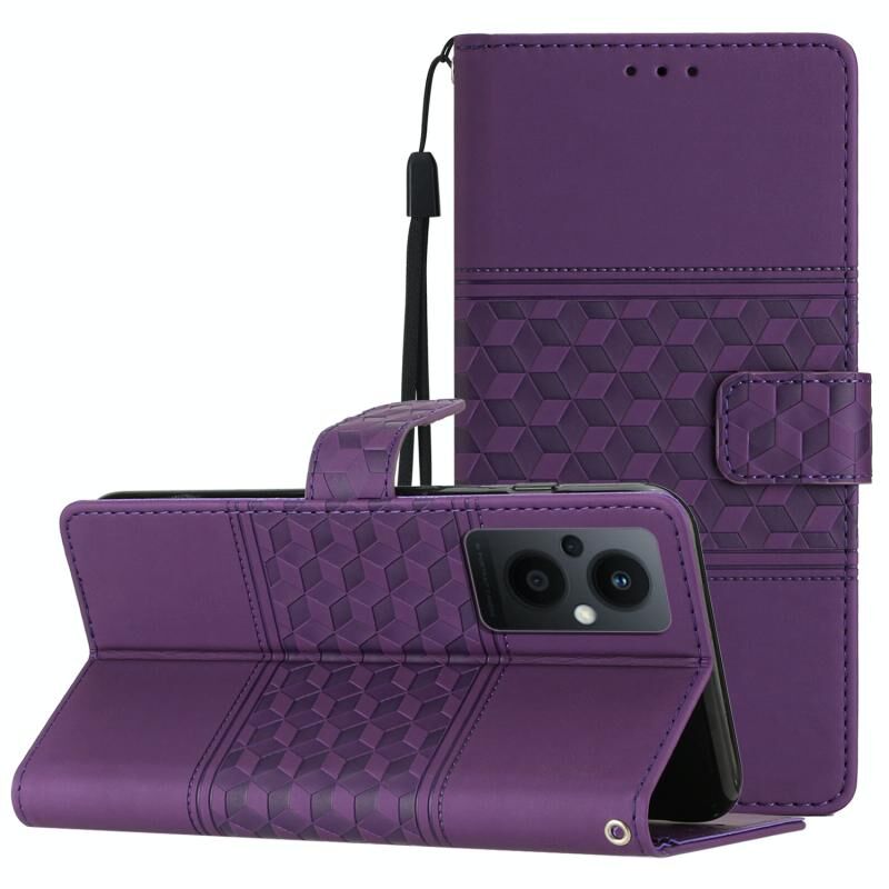 Για OPPO Reno8 Lite 5G Diamond ανάγλυφο δέρμα αίσθηση δερμάτινη θήκη τηλεφώνου με κορδόνι (μωβ)