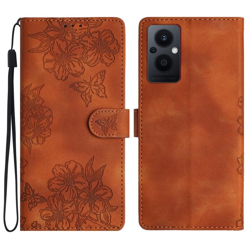 Θήκη τηλεφώνου OPPO Reno8 Lite 5G / Reno7 Z 5G με ανάγλυφο PU υφή Cherry Blossom Butterfly (Κόκκινο)