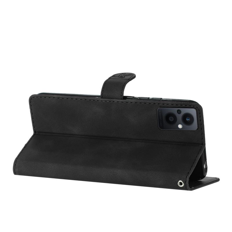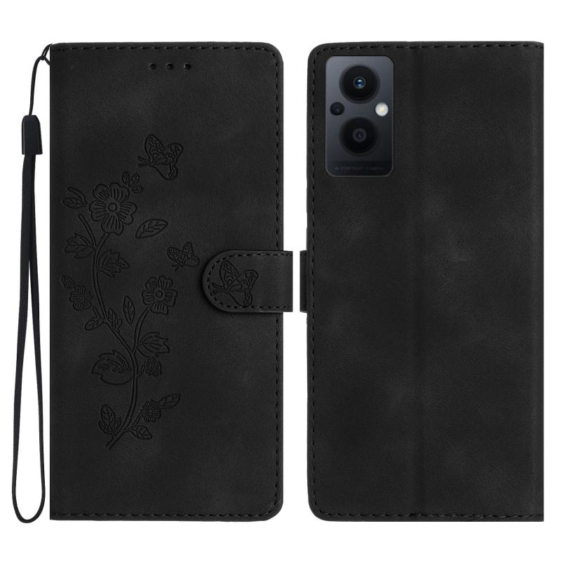 Θήκη τηλεφώνου από δέρμα με ανάγλυφο σχέδιο λουλουδιών και πεταλούδας για OPPO Reno8 Lite 5G / Reno7 Z (Μαύρο)