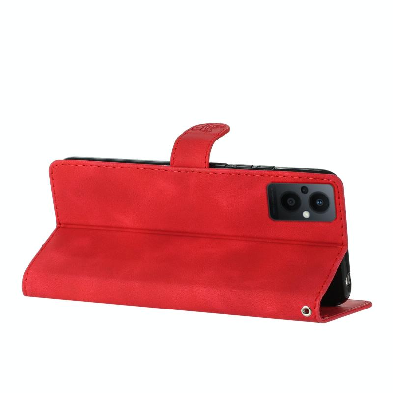 Θήκη τηλεφώνου από δέρμα με ανάγλυφο σχέδιο λουλουδιών και πεταλούδας για OPPO Reno8 Lite 5G / Reno7 Z (Κόκκινο)
