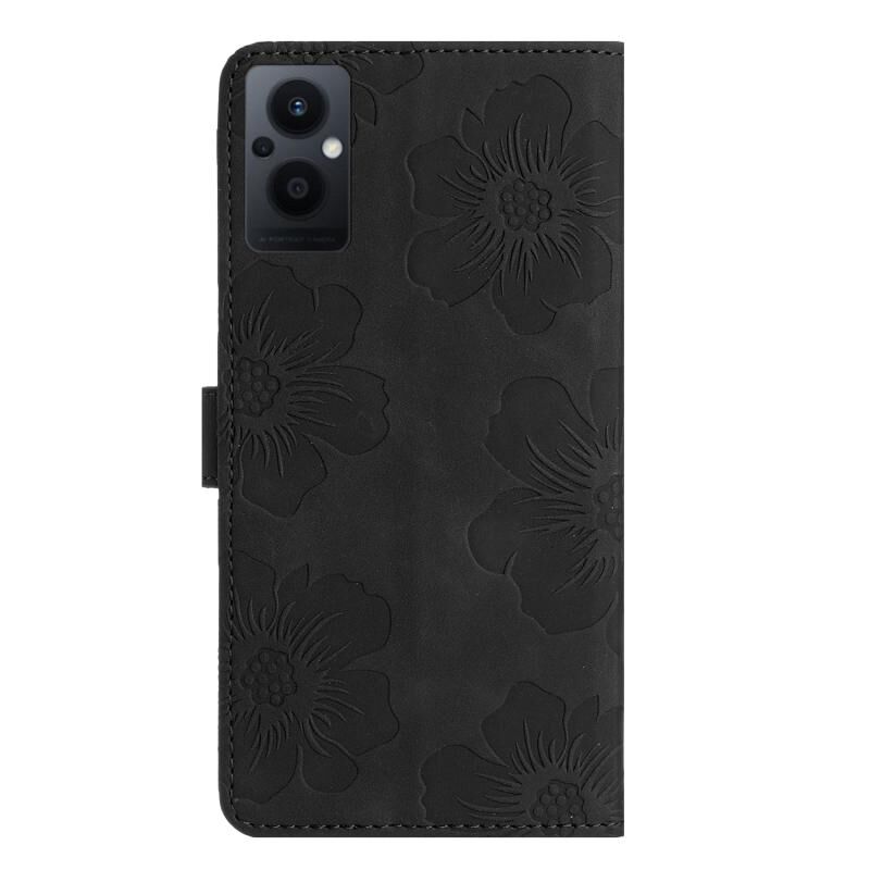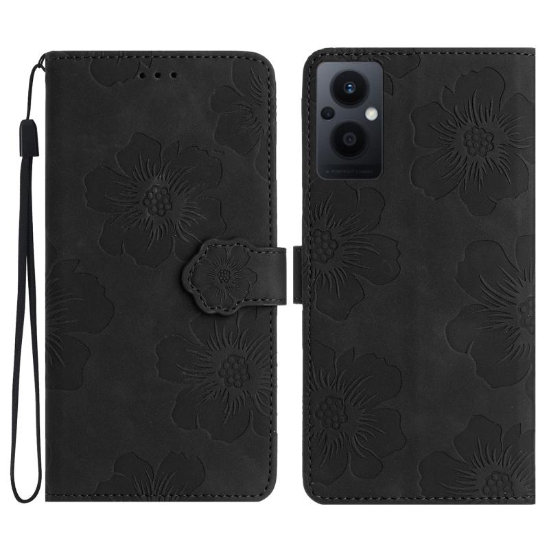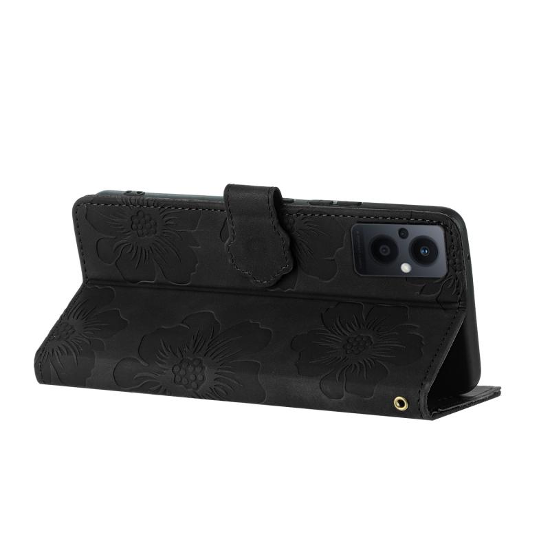 Θήκη τηλεφώνου από δέρμα με ανάγλυφο σχέδιο λουλουδιών για OPPO Reno8 Lite 5G / Reno7 Z (Μαύρο)