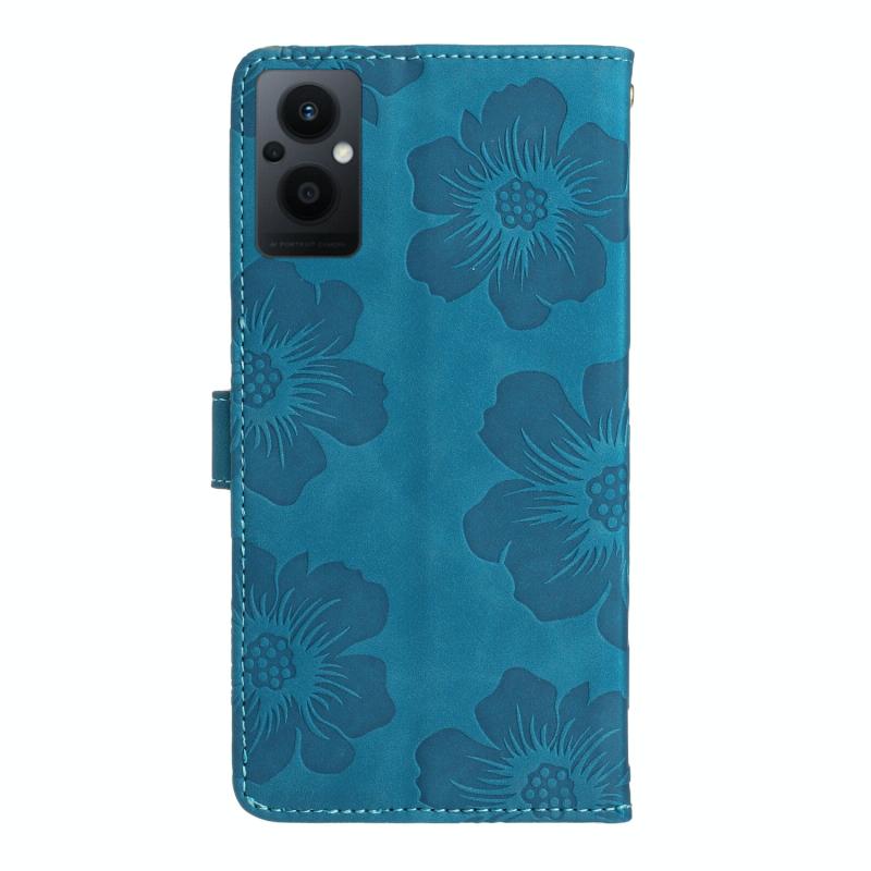 Θήκη τηλεφώνου από δέρμα με ανάγλυφο σχέδιο λουλουδιών για OPPO Reno8 Lite 5G / Reno7 Z (Μπλε)