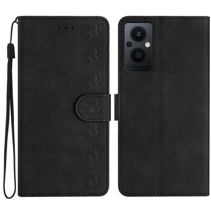 Για OPPO Reno8 Lite 5G Επτά πεταλούδες ανάγλυφη δερμάτινη θήκη τηλεφώνου (μαύρο)
