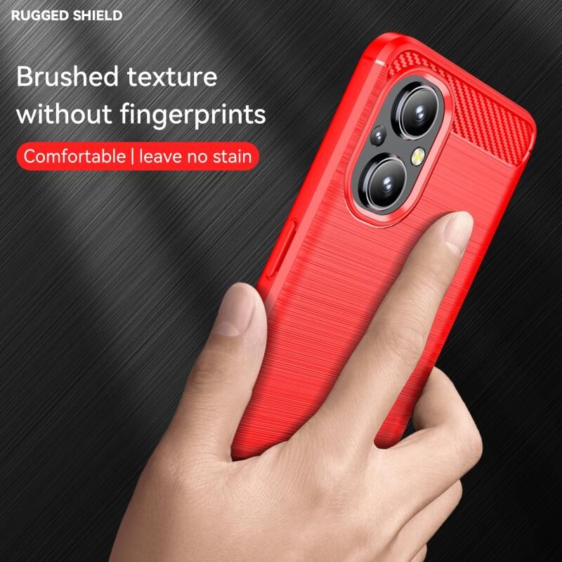 Για OPPO Reno8 Lite βουρτσισμένη υφή Carbon Fiber TPU τηλέφωνο υπόθεση (Κόκκινο)