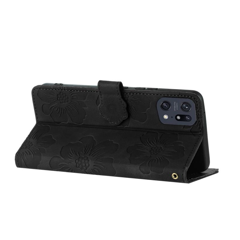 Θήκη τηλεφώνου από δέρμα με ανάγλυφο σχέδιο λουλουδιών για OPPO Reno8 Pro 5G (Μαύρο)