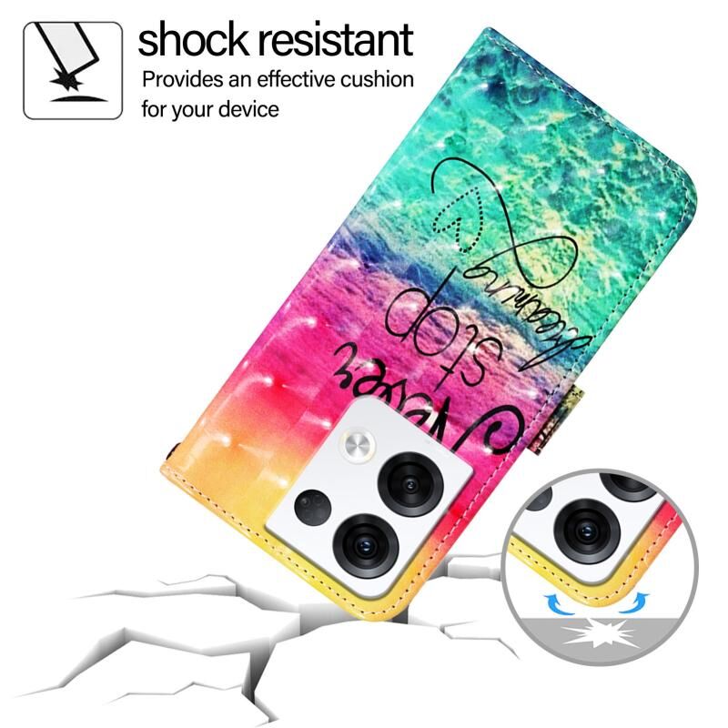 Θήκη τηλεφώνου από δέρμα με οριζόντιο άνοιγμα και τρισδιάστατη βαφή για OPPO Reno8 Pro 5G Global (Κυνηγώντας Όνειρα)