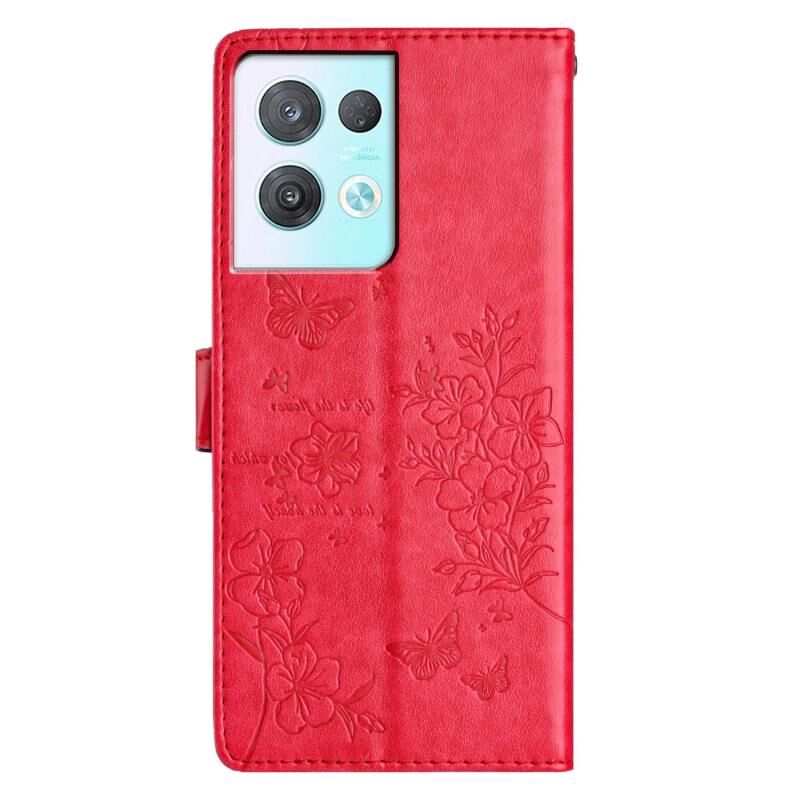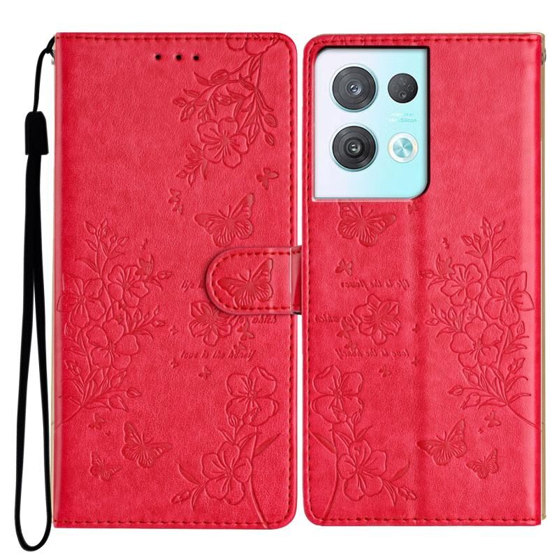 Θήκη τηλεφώνου από δέρμα για OPPO Reno8 Pro 5G Global Butterflies and Flowers (Χρυσό)