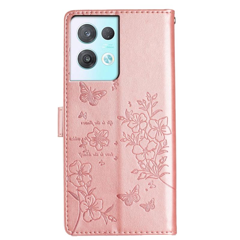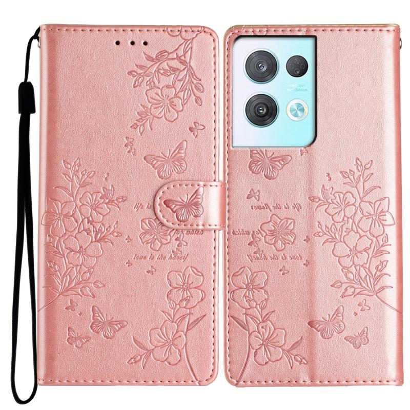 For OPPO Reno8 Pro 5G Global Butterflies and Flowers Leather Phone Case(Rose Gold)