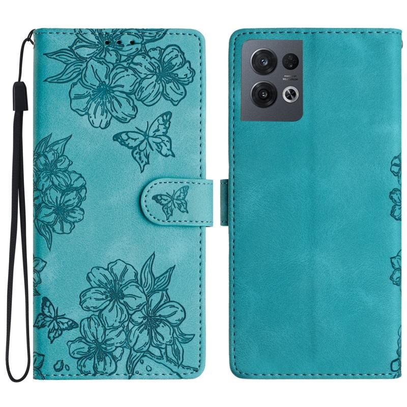 Θήκη τηλεφώνου OPPO Reno8 Pro 5G Global Cherry Blossom Butterfly Skin Feel Embossed PU (Κόκκινη)