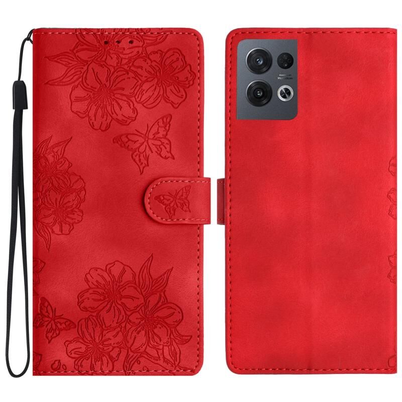 Θήκη τηλεφώνου OPPO Reno8 Pro 5G Global Cherry Blossom Butterfly Skin Feel Embossed PU (Κόκκινη)