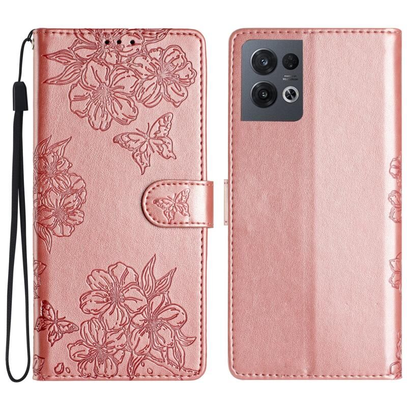 Θήκη τηλεφώνου OPPO Reno8 Pro 5G Global Cherry Blossom Butterfly Skin Feel Embossed PU (Κόκκινη)