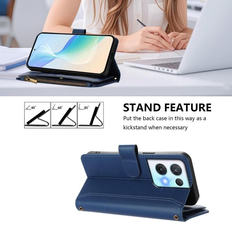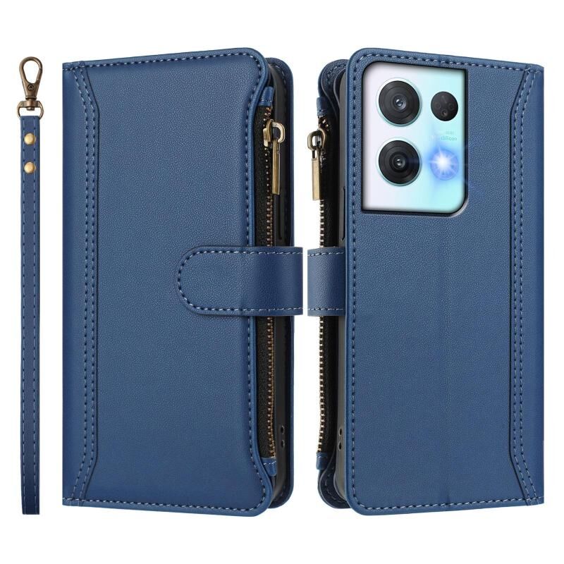 Για OPPO Reno8 Pro 5G Μαγνητικό Κλείσιμο 9 Θήκες Κάρτας Δερμάτινη Θήκη με Φερμουάρ και Λουρί Χεριού (Σκούρο μπλε)
