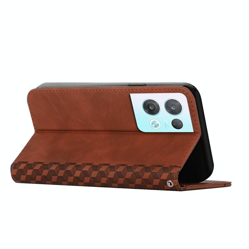 Θήκη τηλεφώνου από δέρμα με μαγνητική αίσθηση, με διαμάντια και ραφές για OPPO Reno8 Pro+ 5G/Reno8 Pro 5G (Καφέ)