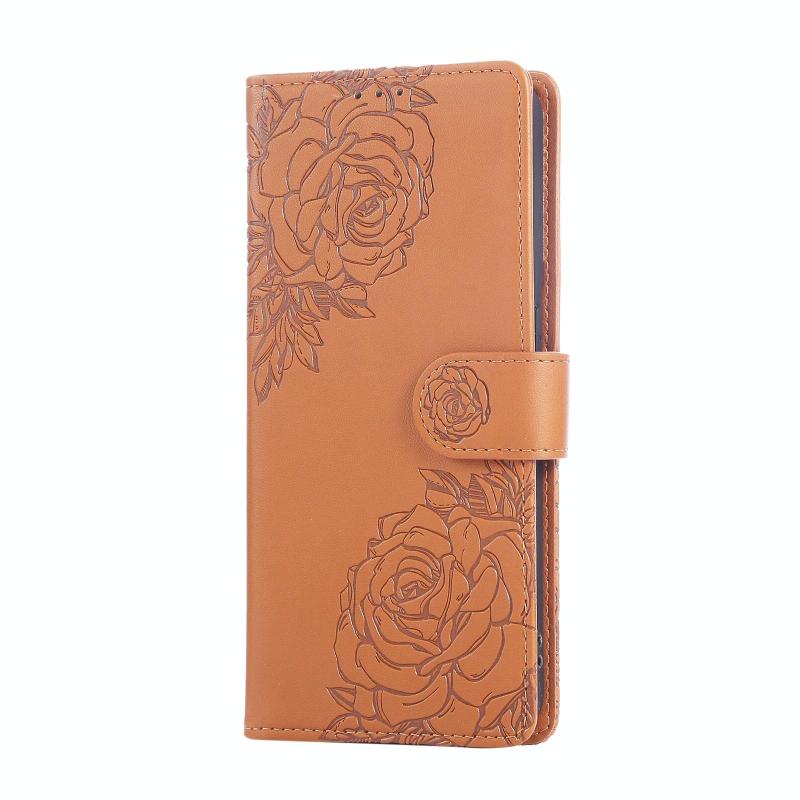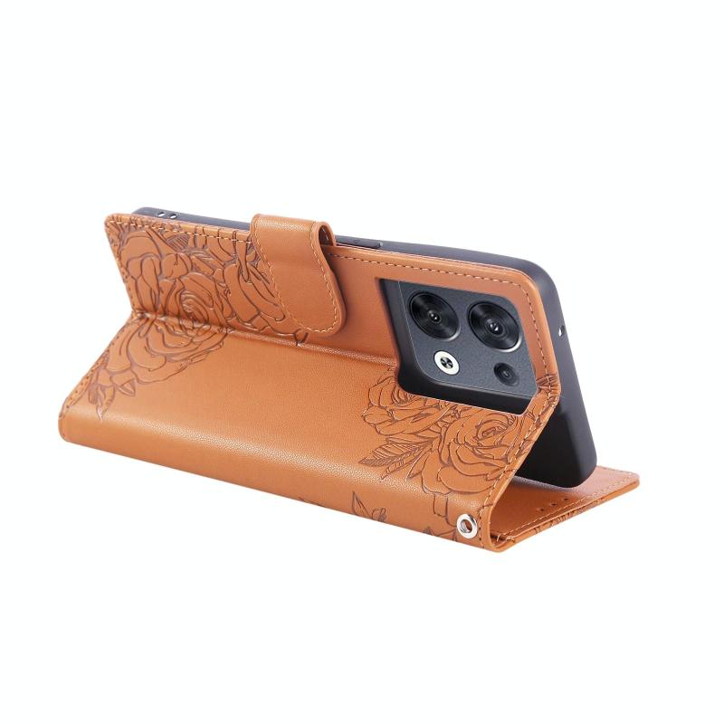 For OPPO Reno8 Pro 5G Rose Flower Embossed 3-Card Slots Leather Phone Case(Brown)