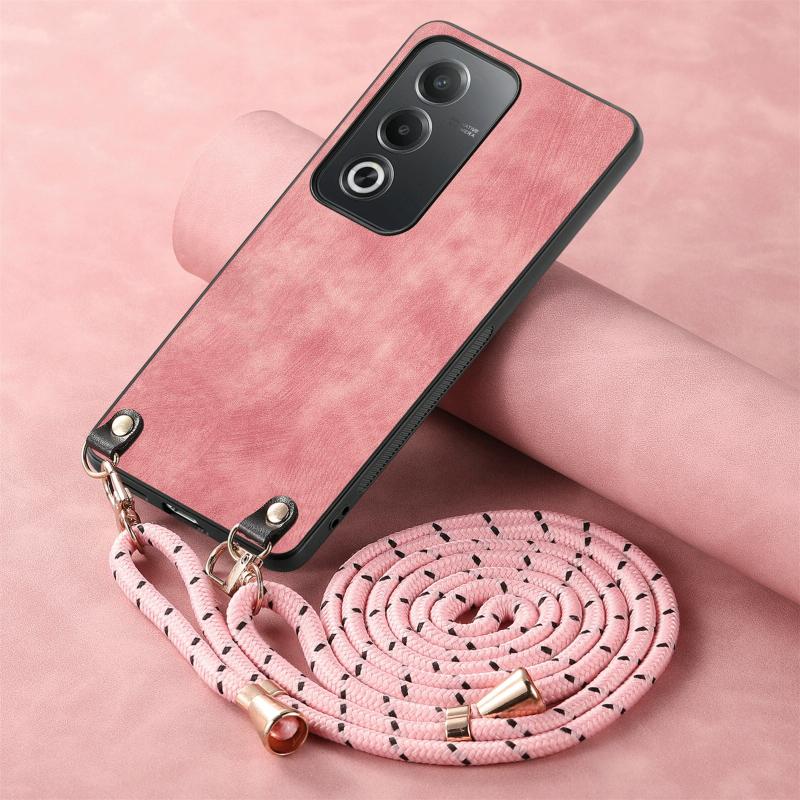Θήκη κινητού τηλεφώνου OPPO Reno8 Pro 5G με δερμάτινη πλάτη PC σε vintage στυλ και λουρί crossbody (Καφέ)