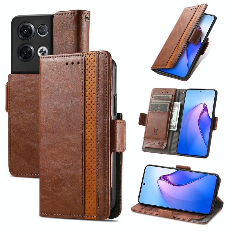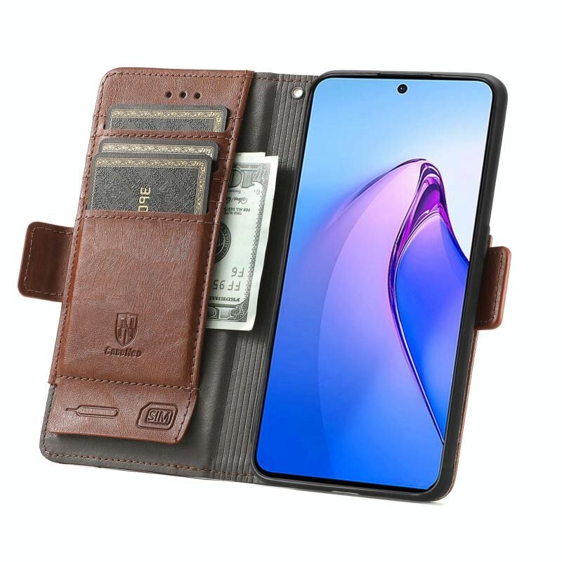Για OPPO Reno8 Pro CaseNeo Splicing Διπλή μαγνητική πόρπη δερμάτινη θήκη τηλεφώνου (καφέ)
