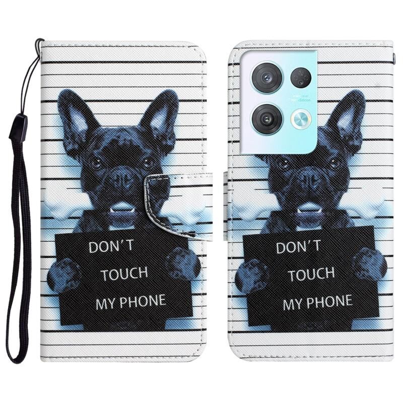 Θήκη τηλεφώνου από δέρμα με έγχρωμη σχεδίαση για OPPO Reno8 Pro (Μαύρος Σκύλος)