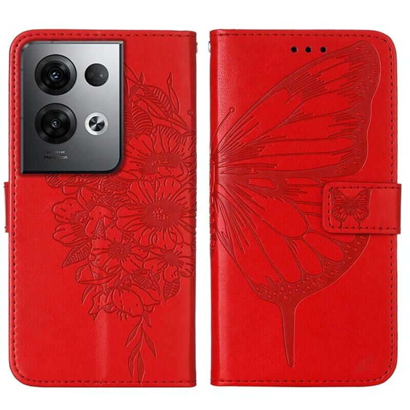 Για OPPO Reno8 Pro + ανάγλυφη πεταλούδα Flip δερμάτινη θήκη τηλεφώνου (κόκκινο)