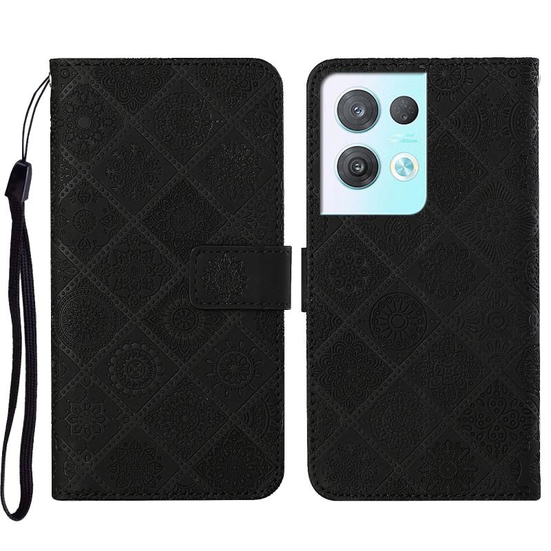 Θήκη τηλεφώνου δερμάτινη με ανάγλυφο σχέδιο εθνοτικού στυλ για OPPO Reno8 Pro (Μωβ)