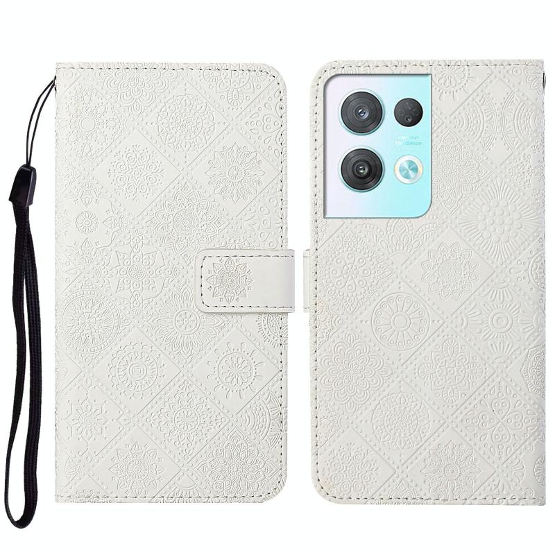Θήκη τηλεφώνου δερμάτινη με ανάγλυφο σχέδιο εθνοτικού στυλ για OPPO Reno8 Pro (Μωβ)