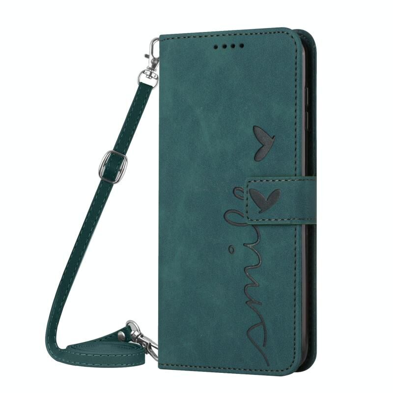 Για OPPO Reno8 Pro Global / Reno8 Pro + Global δέρμα αίσθηση καρδιά μοτίβο δερμάτινη θήκη τηλεφώνου με κορδόνι (πράσινο)