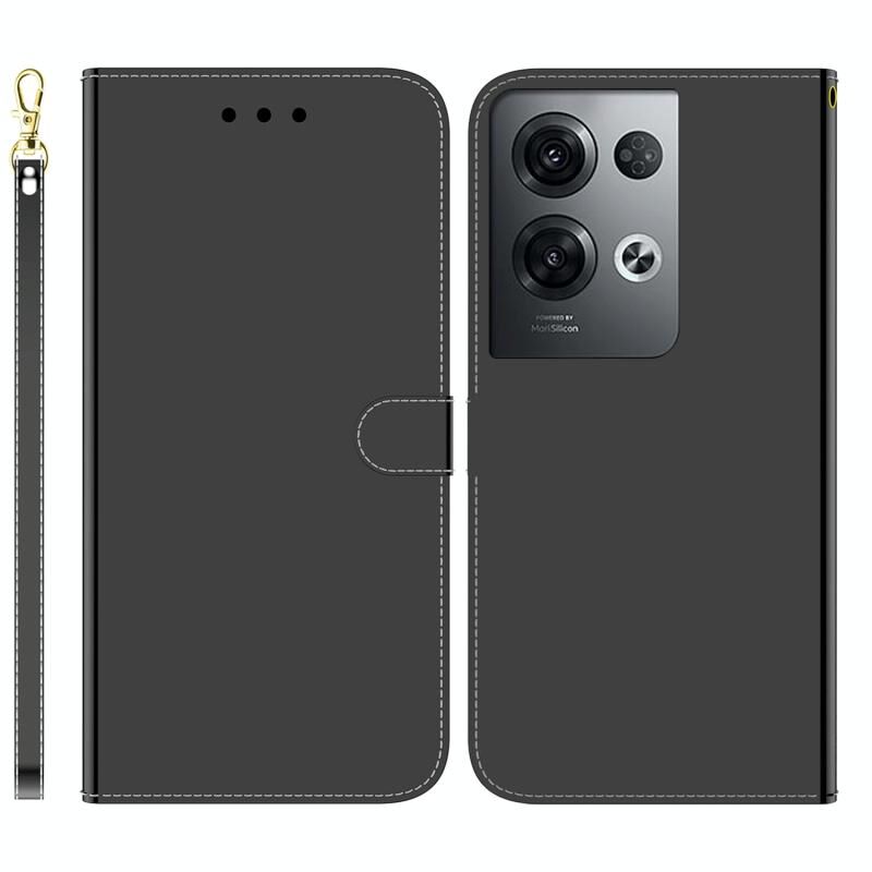 Για OPPO Reno8 Pro + Απομιμητικά Mirror Surface Flip δέρμα τηλέφωνο υπόθεση (Μαύρο)