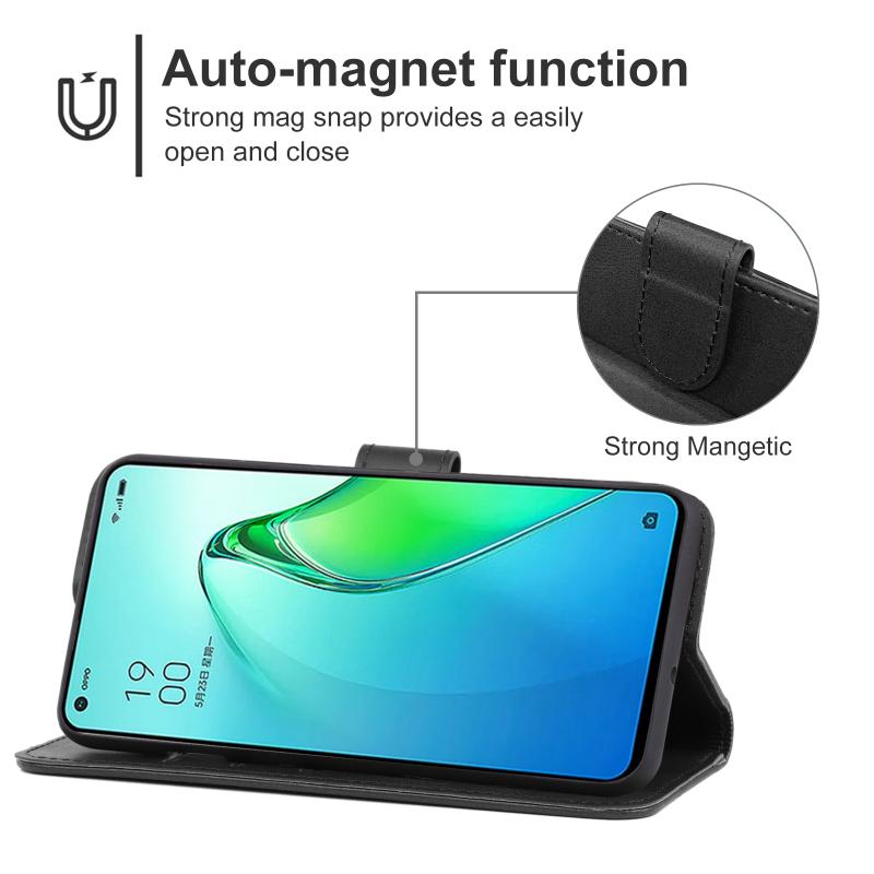 Θήκη τηλεφώνου από δέρμα για OPPO Reno8 Pro (Μαύρο)