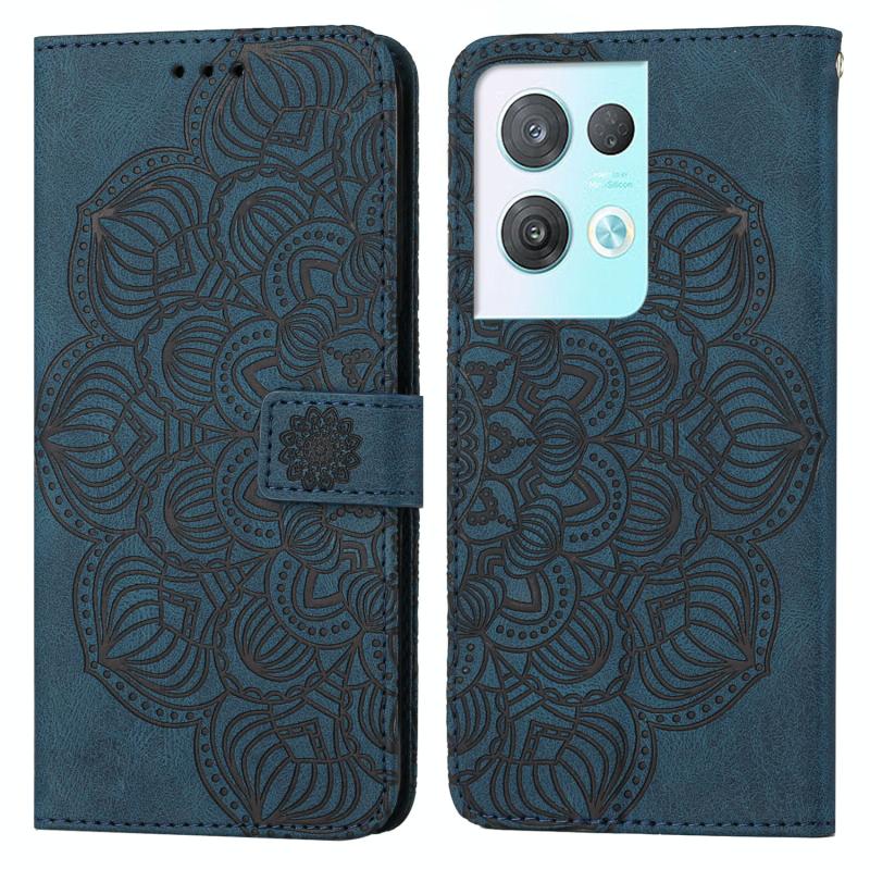 Θήκη τηλεφώνου από δέρμα με ανάγλυφο Mandala για OPPO Reno8 Pro (Μπλε)