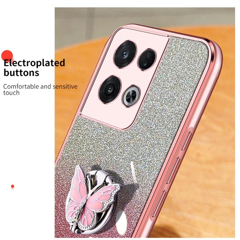 For OPPO Reno8 Pro Plated Gradient Glitter Butterfly Holder TPU Phone Case(Purple)