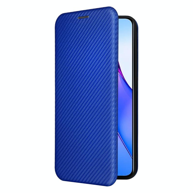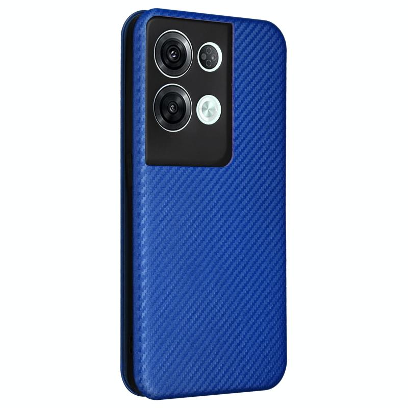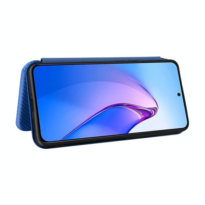Θήκη τηλεφώνου από δέρμα με υφή ανθρακονήματος για OPPO Reno8 Pro / Reno8 Pro+ (Μπλε)