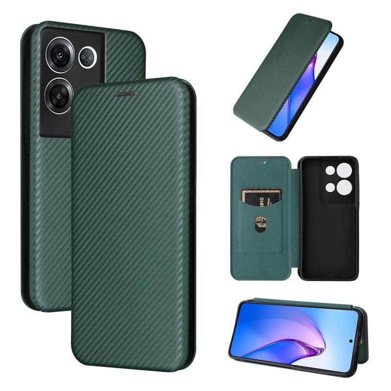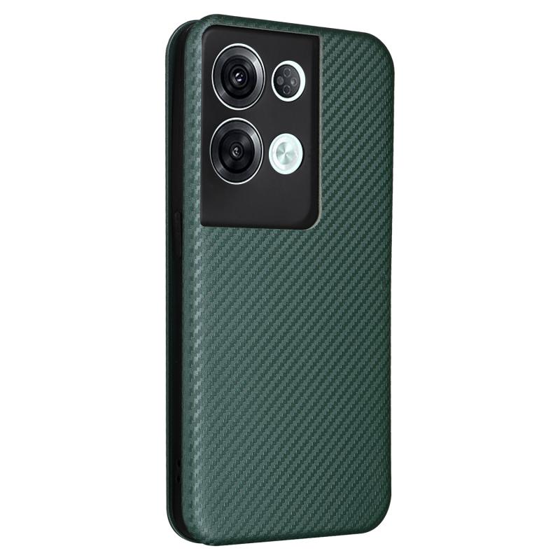 Θήκη τηλεφώνου από δέρμα με υφή ανθρακονήματος για OPPO Reno8 Pro / Reno8 Pro+ (πράσινο)