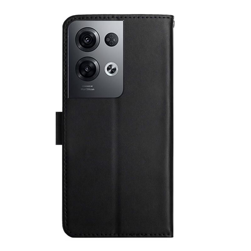 Θήκη τηλεφώνου Flip από γνήσιο δέρμα, ανθεκτική στις δακτυλικές αποτυπώματα για OPPO Reno8 Pro+ / Reno8 Pro HT02 (Μαύρο)