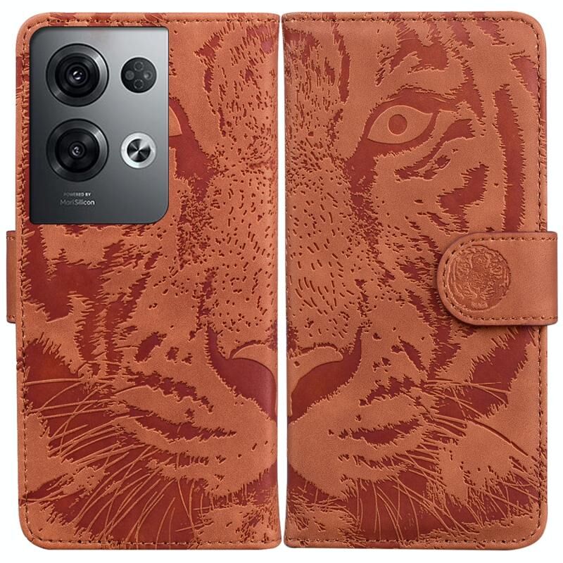 Για OPPO Reno8 Pro Tiger ανάγλυφο μοτίβο Flip δέρμα τηλέφωνο υπόθεση (καφέ)