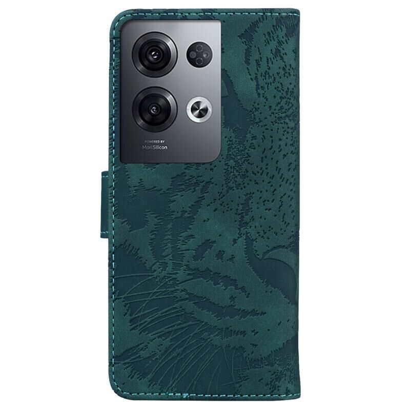 Για OPPO Reno8 Pro Tiger ανάγλυφο μοτίβο Flip δέρμα τηλέφωνο υπόθεση (πράσινο)