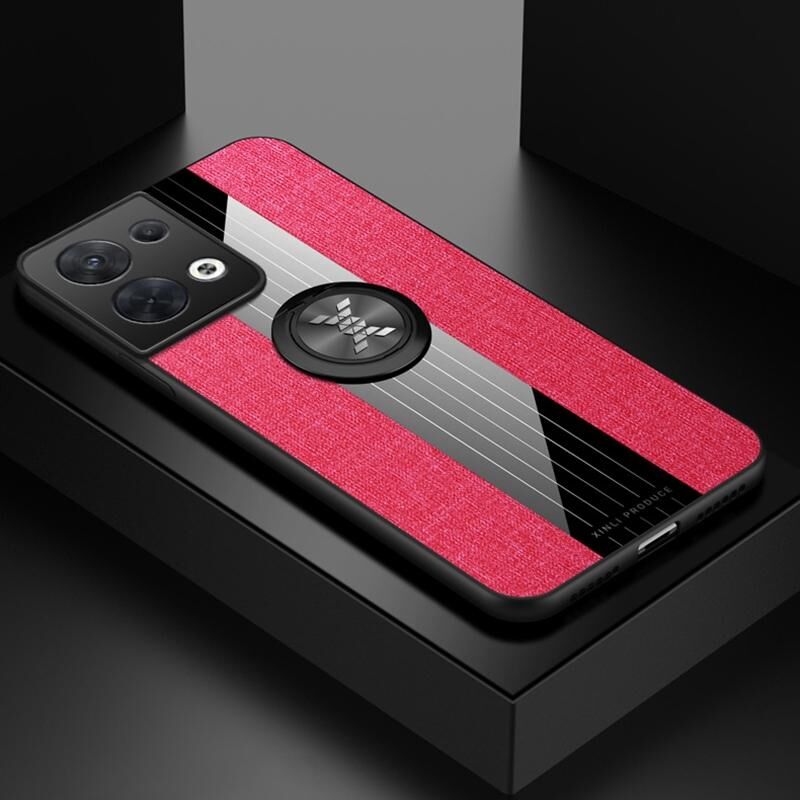 Για OPPO Reno8 Pro + XINLI ραφή ύφασμα Textue TPU τηλέφωνο υπόθεση με κάτοχο δαχτυλίδι (κόκκινο) (XINLI)
