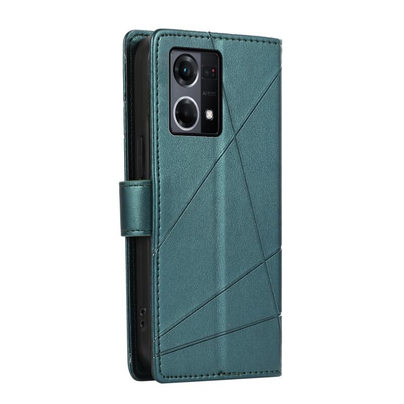 Θήκη τηλεφώνου OPPO Reno8 PU με γνήσια υφή δέρματος και ανάγλυφο σχέδιο (Μπλε)