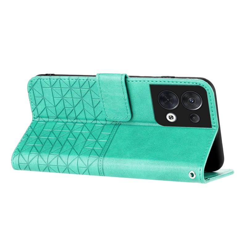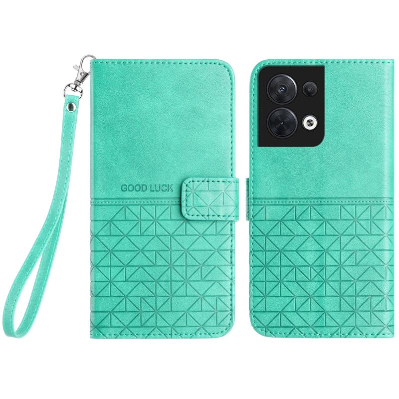 For OPPO Reno8 Rhombic Texture Leather Phone Case with Lanyard(Green)