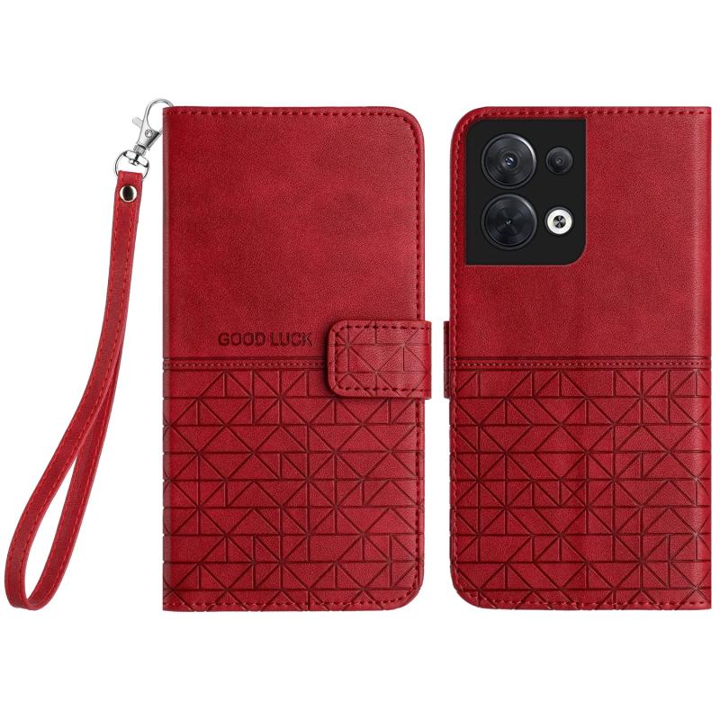 For OPPO Reno8 Rhombic Texture Leather Phone Case with Lanyard(Red)