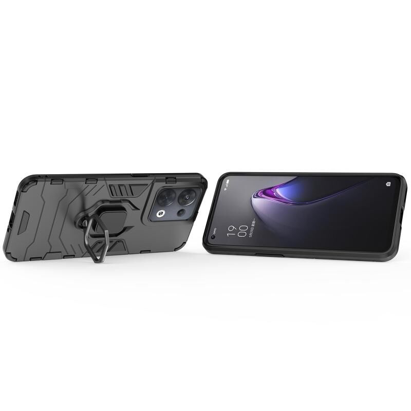 Για OPPO Reno8 Shockproof PC + TPU Προστατευτική θήκη τηλεφώνου με μαγνητικό δαχτυλίδι κάτοχος (Μαύρο)