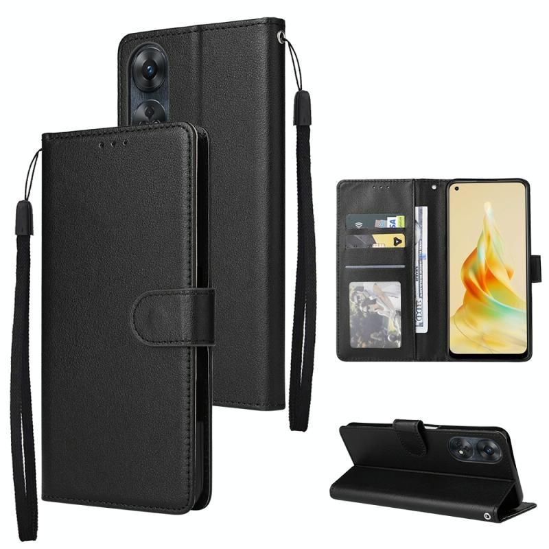 Θήκη τηλεφώνου από δέρμα πολλαπλών λειτουργιών για OPPO Reno8 T 4G με 3 υποδοχές καρτών (Μαύρο)
