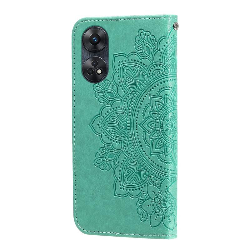 Θήκη τηλεφώνου από δέρμα με ανάγλυφα 7 πέταλα λουλουδιών για OPPO Reno8 T 4G (Ανοιχτό Μωβ)