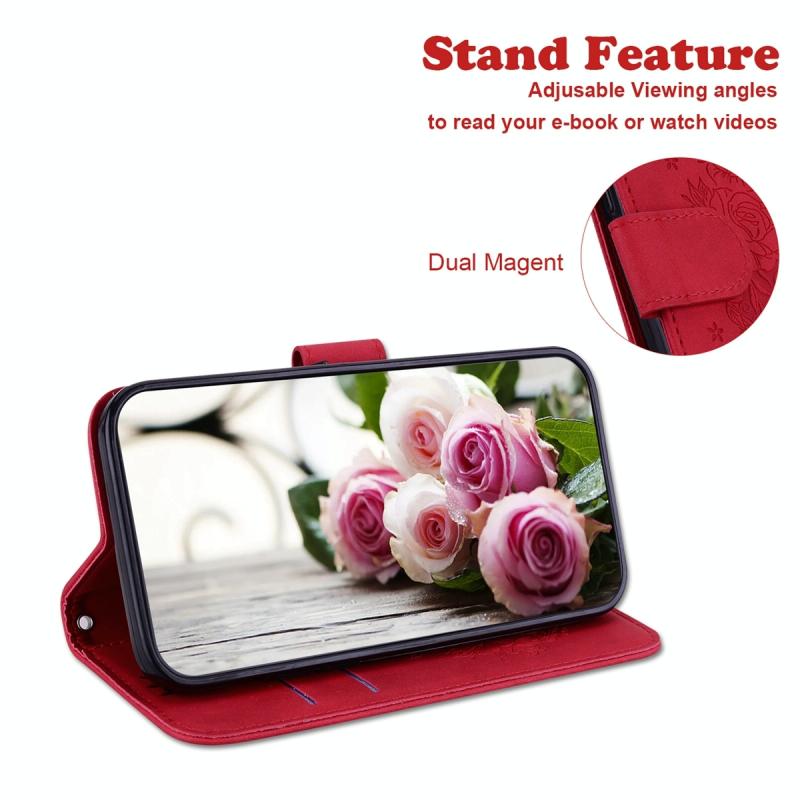 Θήκη τηλεφώνου από ανάγλυφο δέρμα για OPPO Reno8 T 4G Butterfly Rose (Ροζ)