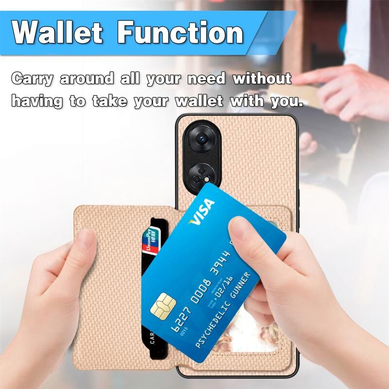 Για OPPO Reno8 T 4G Carbon Fiber μαγνητική κάρτα τσάντα υπόθεση τηλεφώνου (καφέ)