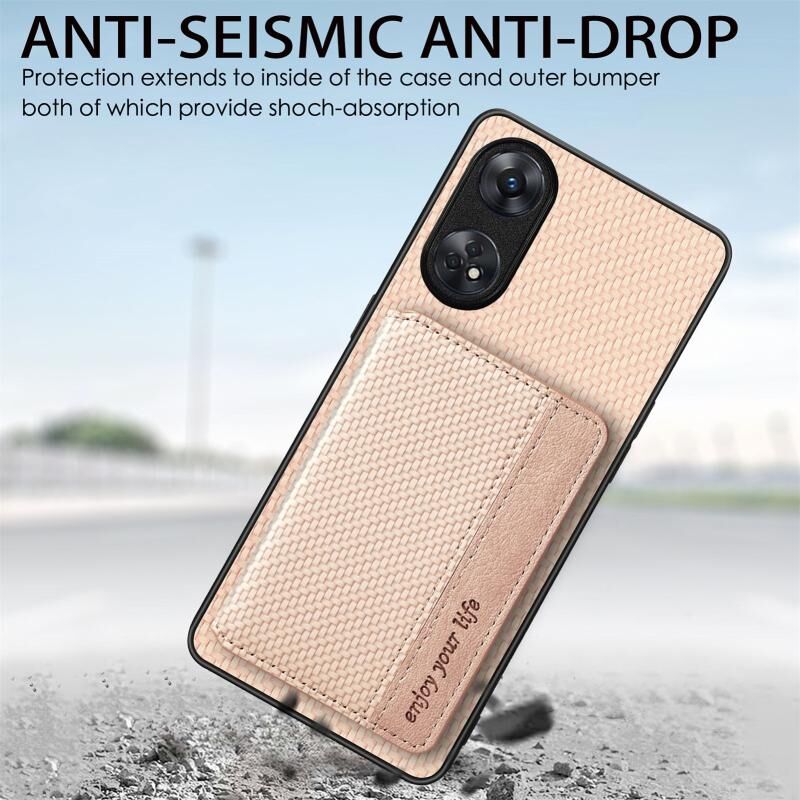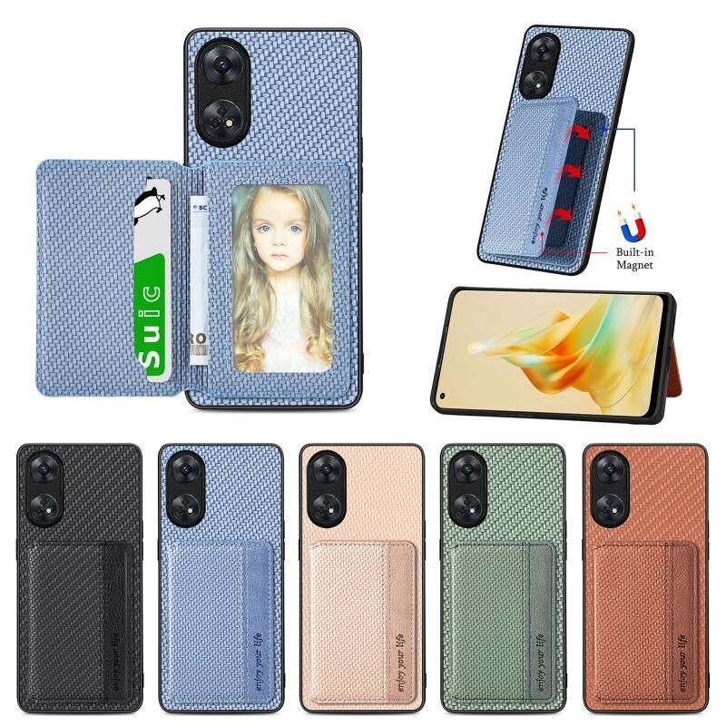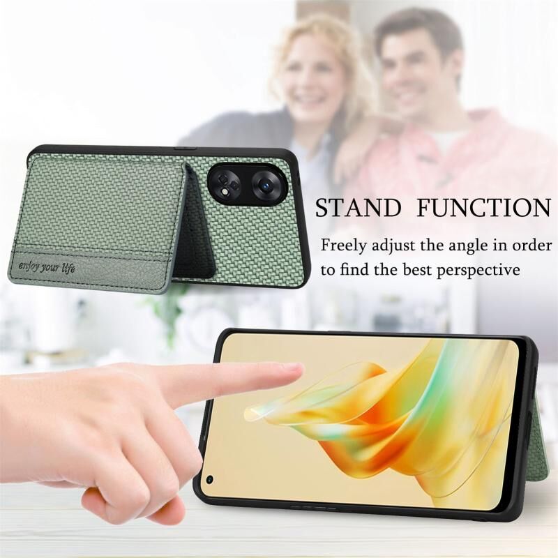 Για OPPO Reno8 T 4G Carbon Fiber μαγνητική κάρτα τσάντα υπόθεση τηλεφώνου (Χακί)