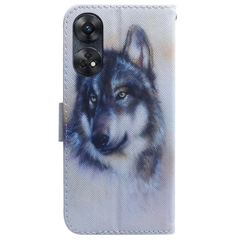Θήκη τηλεφώνου από δέρμα με σχέδιο flip για OPPO Reno8 T 4G (Λευκός Λύκος)
