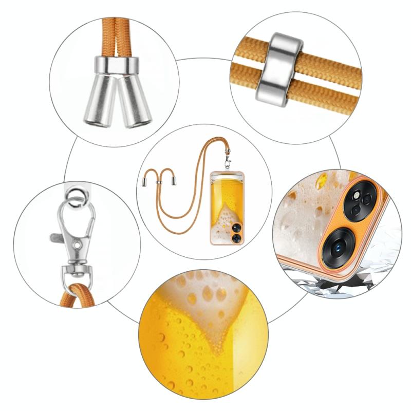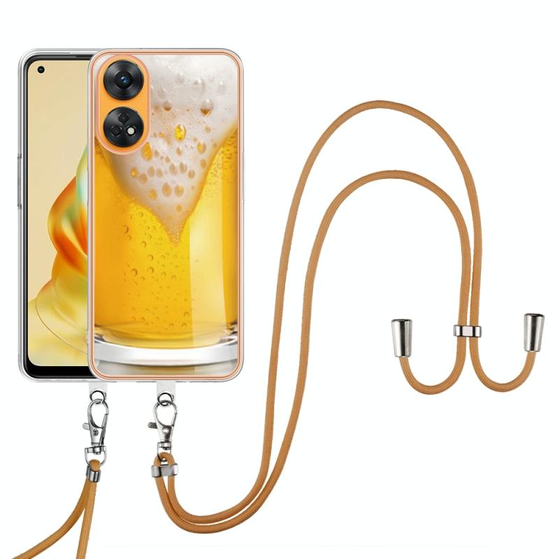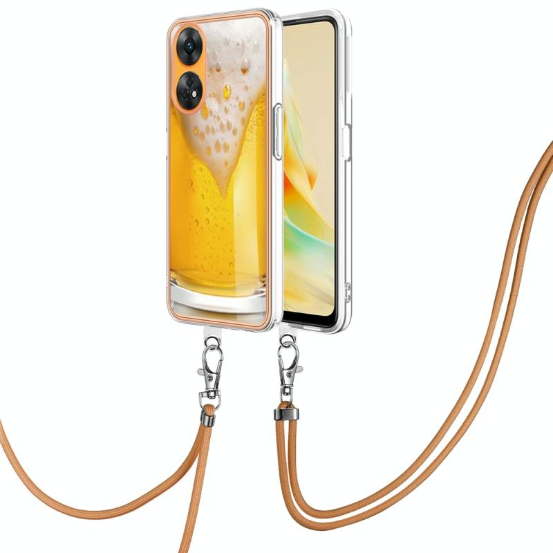 For OPPO Reno8 T 4G Electroplating Dual-side IMD Phone Case with Lanyard(Draft Beer)